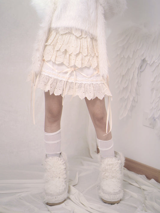 Hem Gothic Ribbon Tiered Lace Sweet Skirt