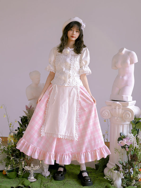 Plaid Flower Cute Frill Tiered Fluffy Skirt