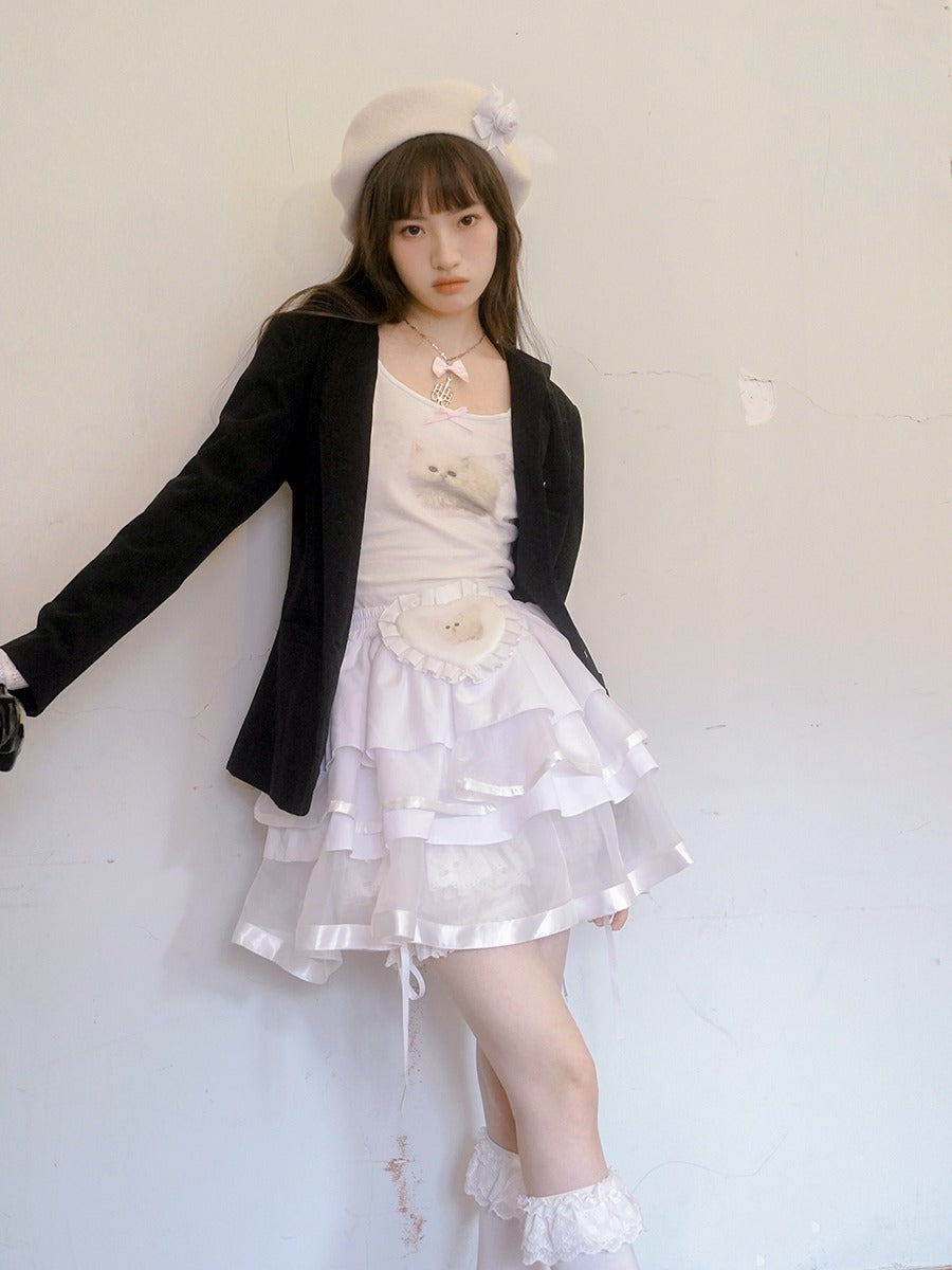 Angel Cat & Bunny Bow Round Neck T-shirt