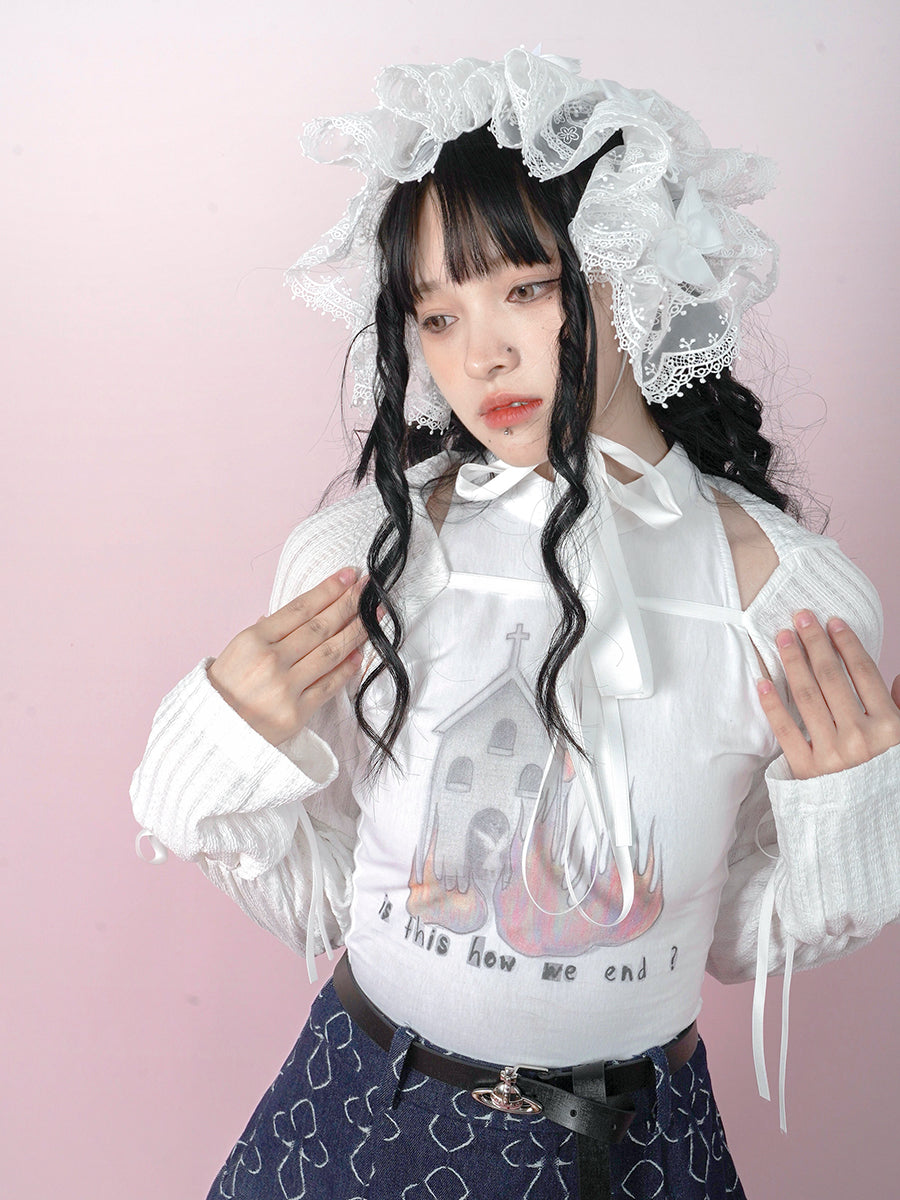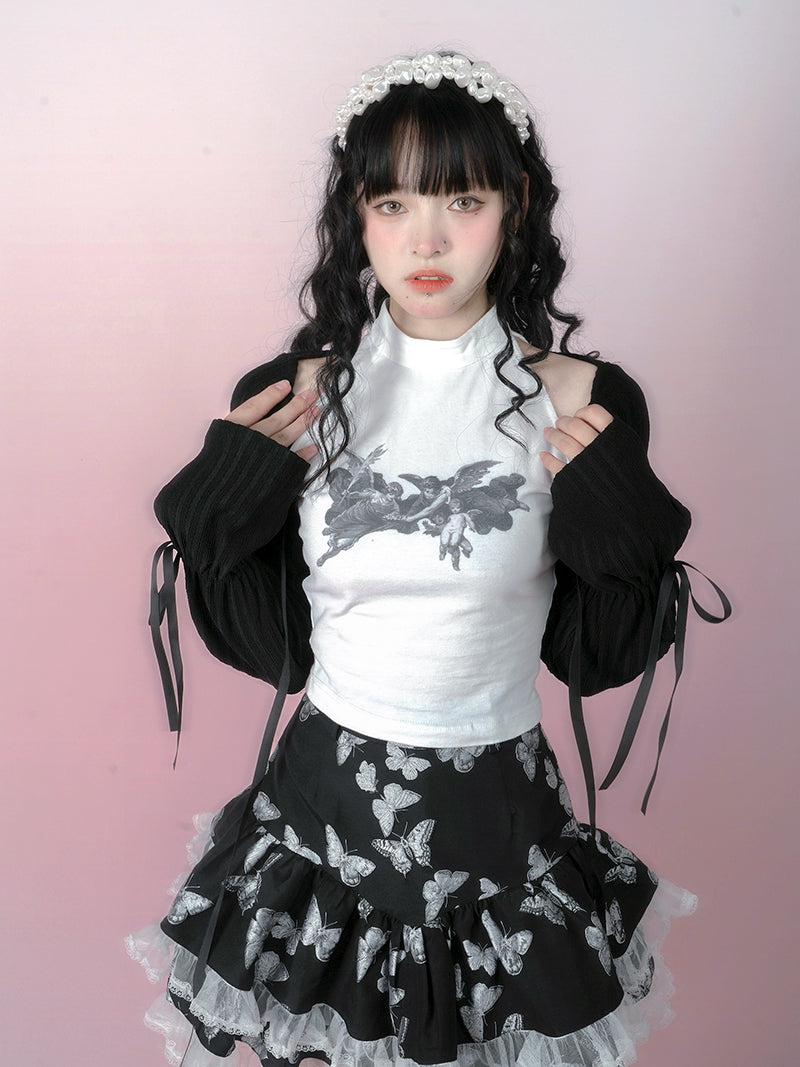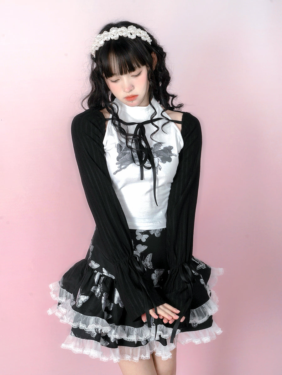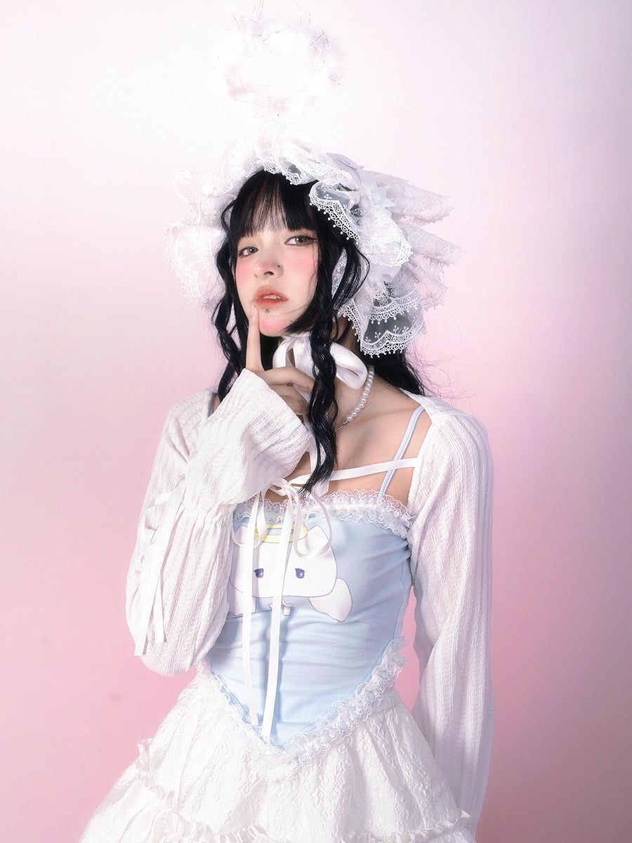 Bow Lace Knitted Sun Protection Short Top