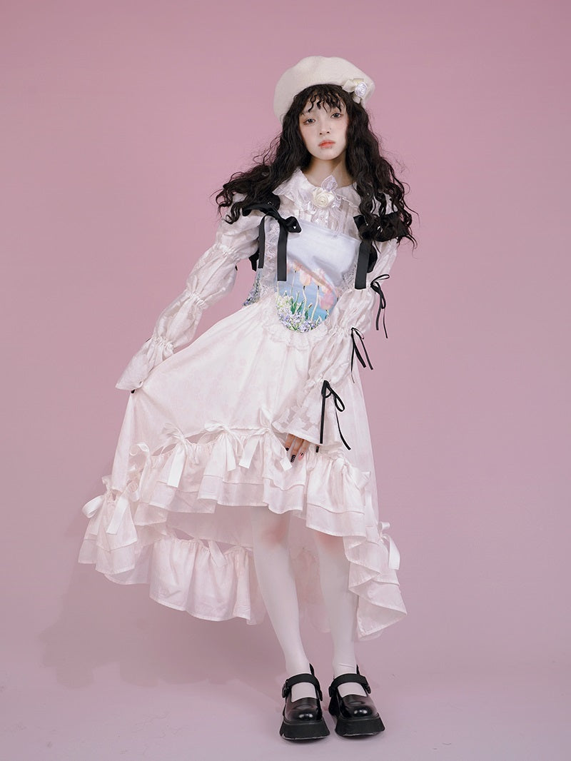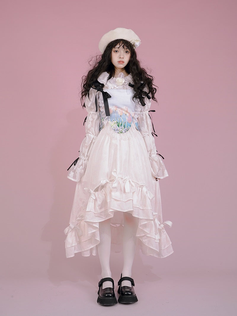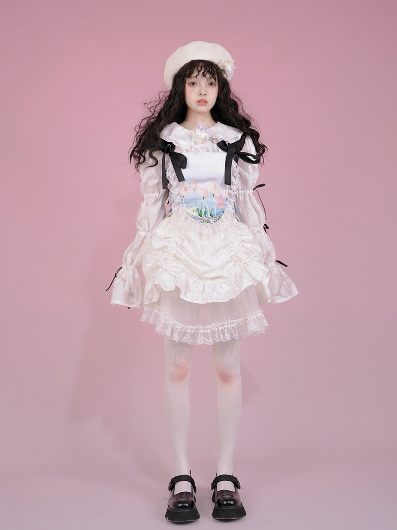 Gothic Lace Frill Ribbon Lace-up Bear Tulip Bustier