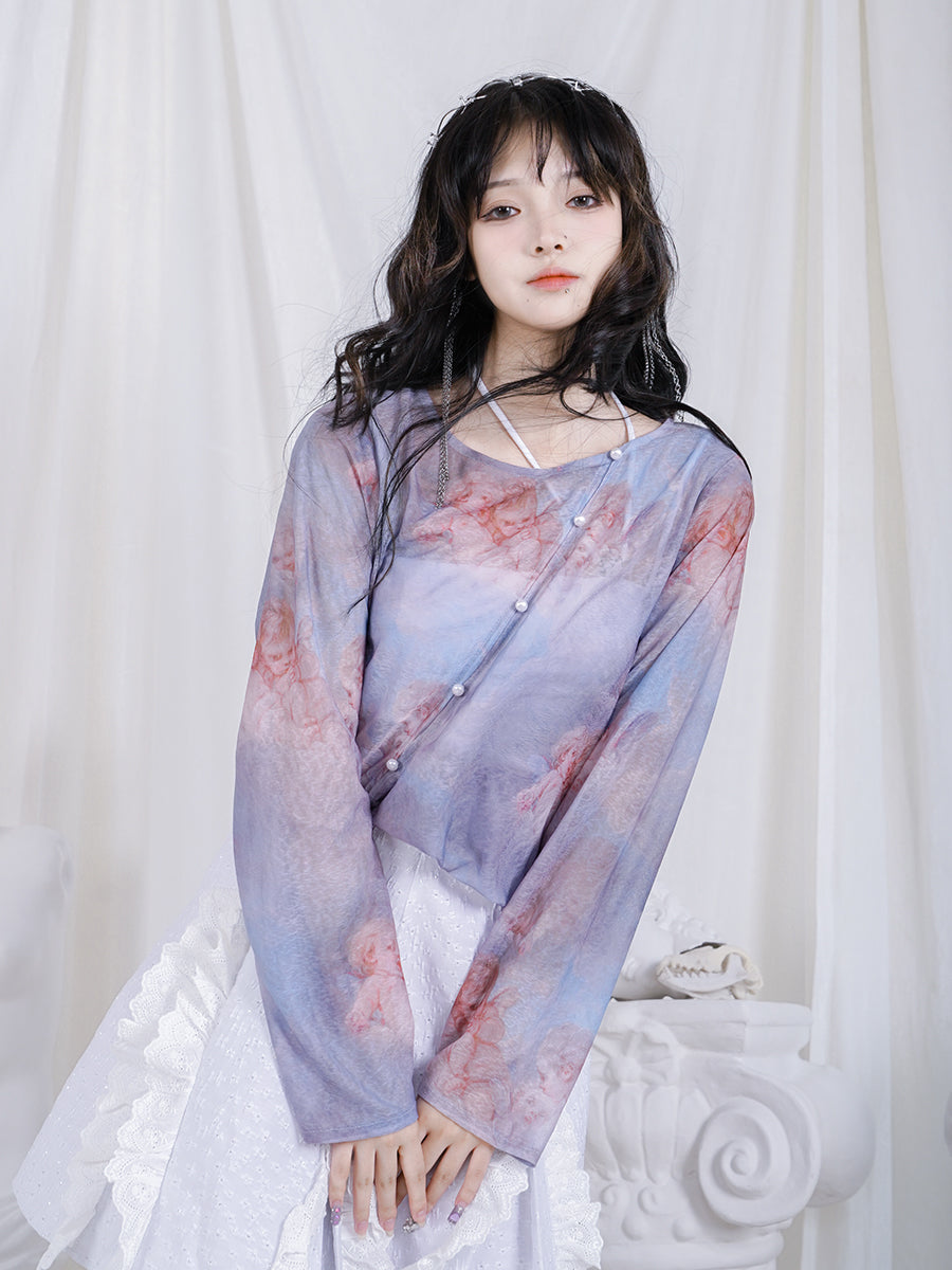 Pale Angel Sheer Loose Pearl-button Cutsew