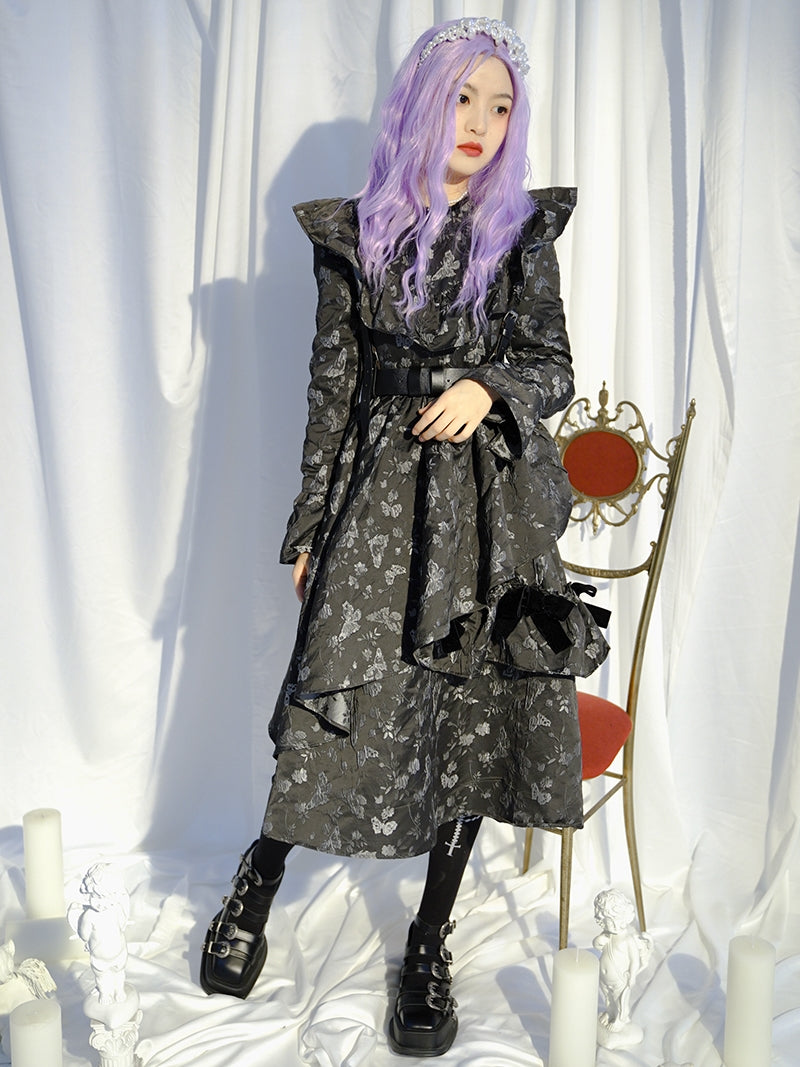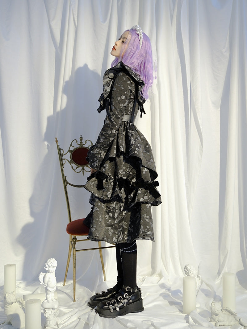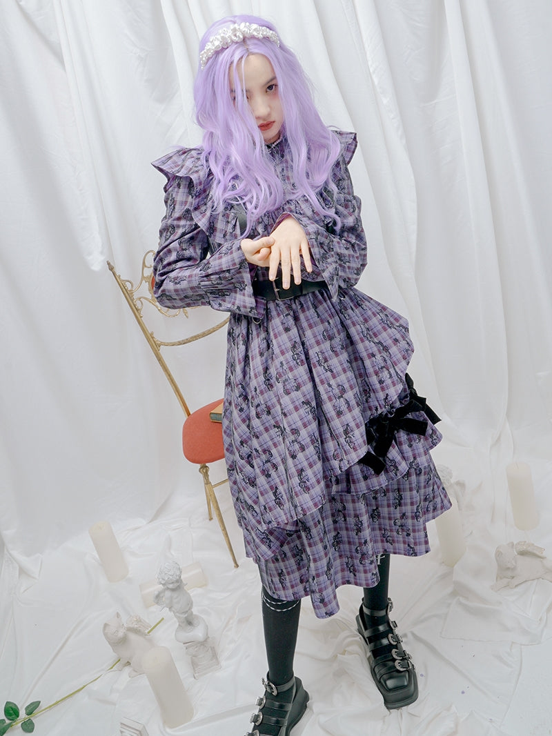 Plaid Flower Retro Asymmetry Ribbon Fluffy One-piece