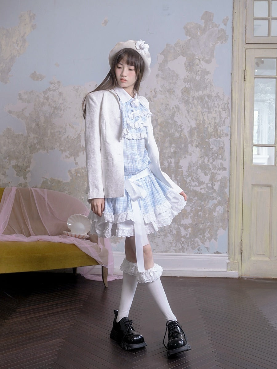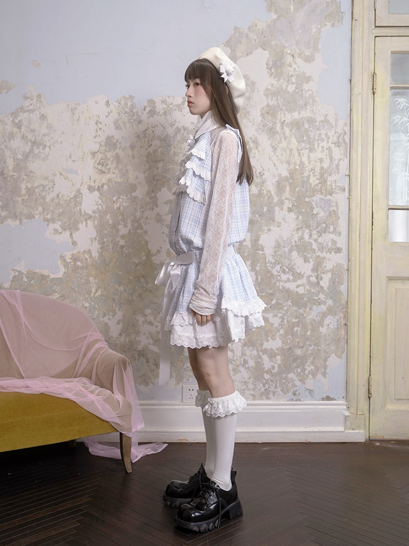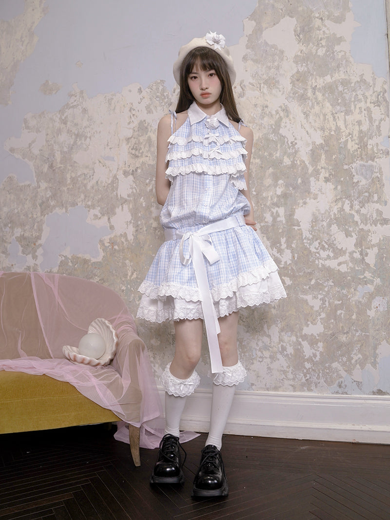 Plaid Jacquard Lace Low Waist Sleeveless One-piece