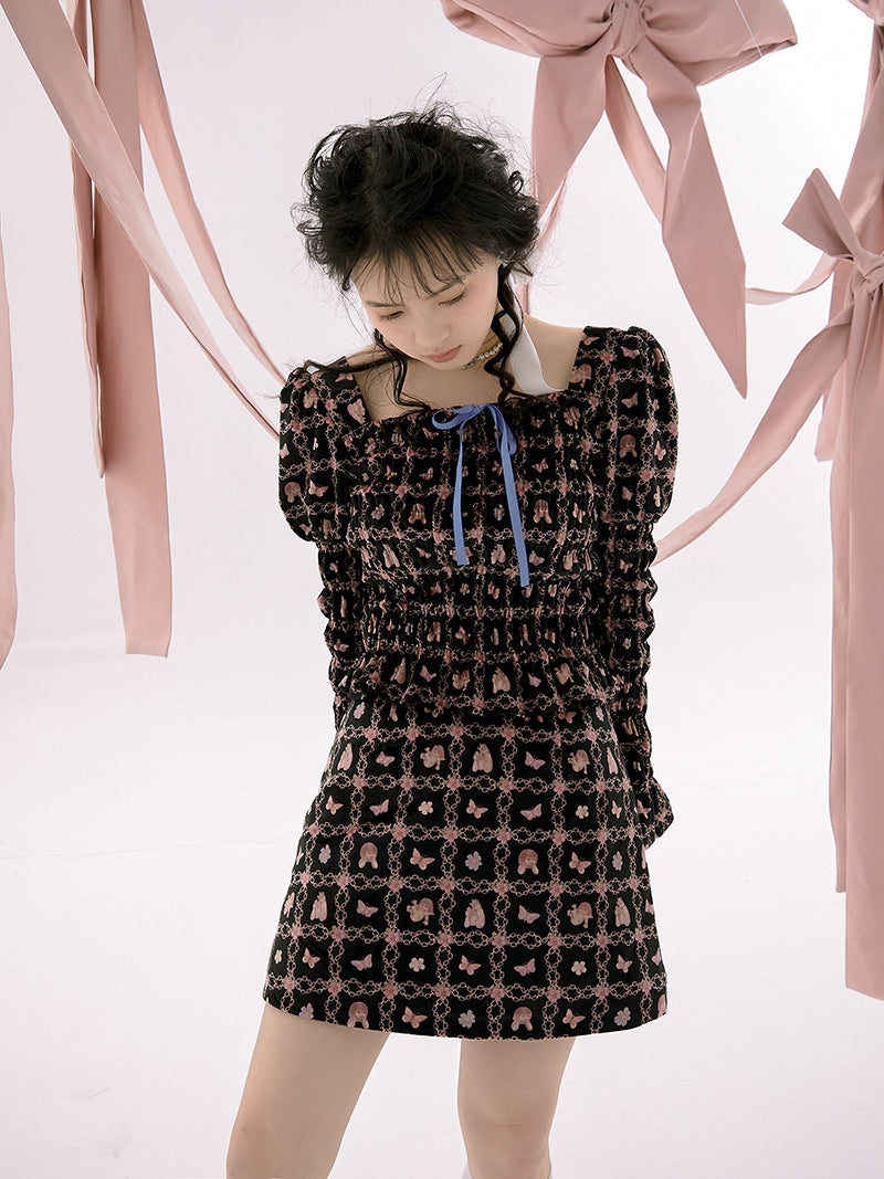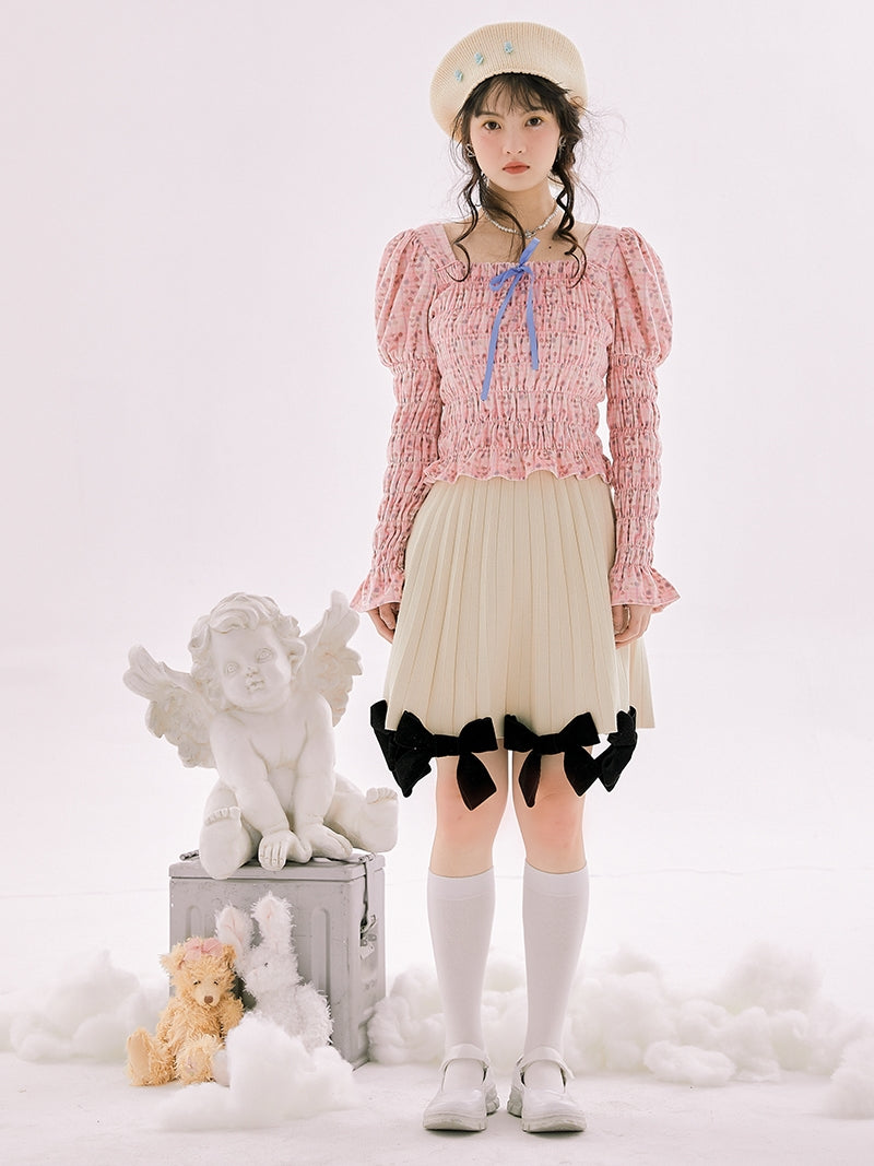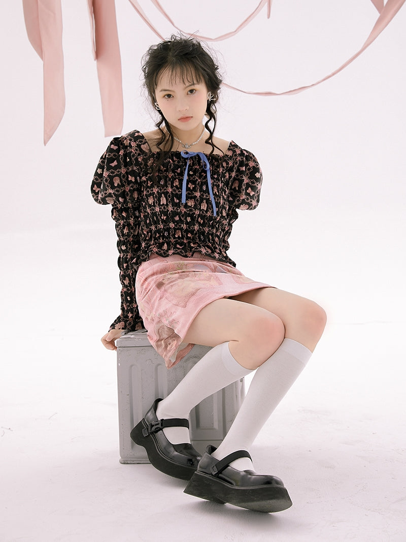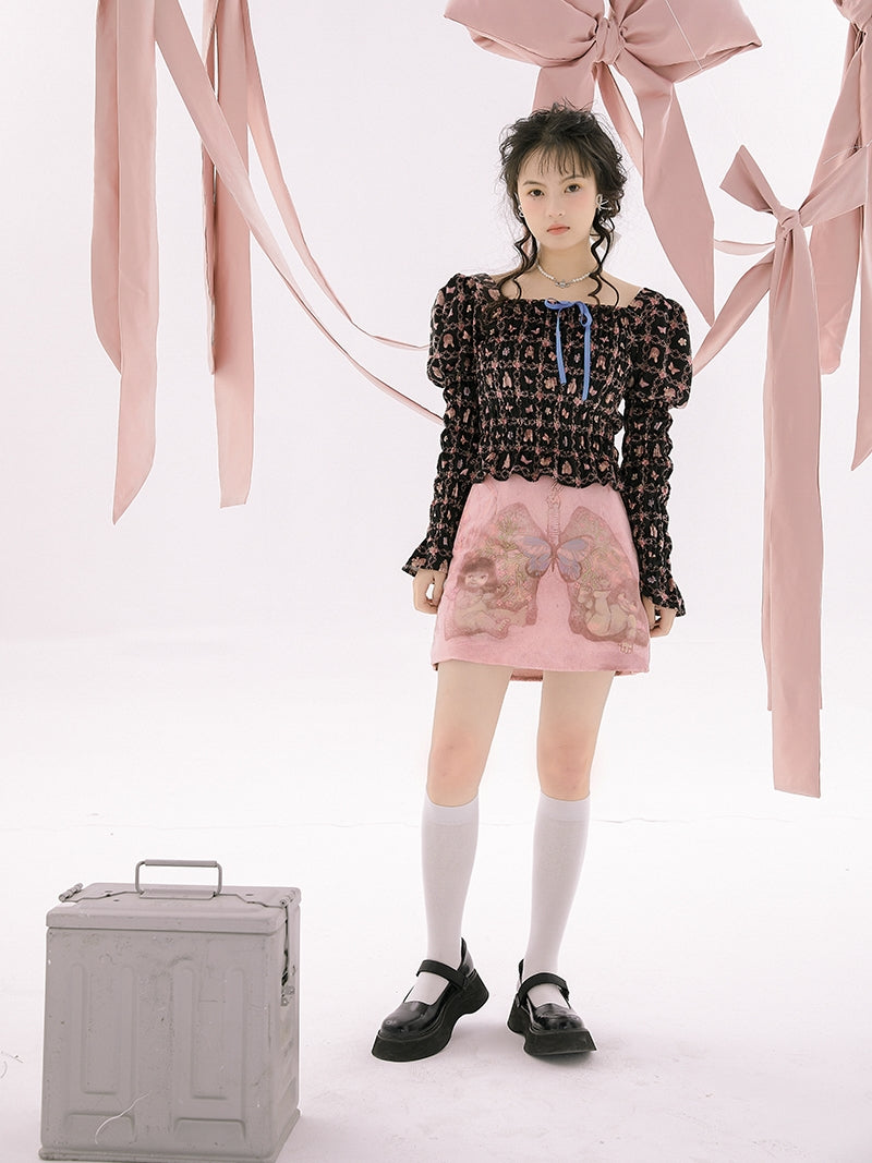 Wrinkled Gather Peplum Power-shoulder Blouse